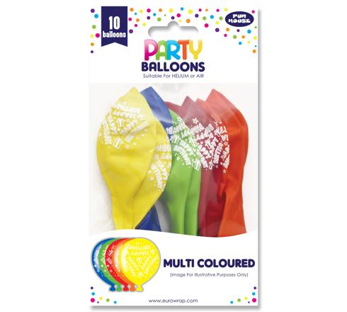 10 ballons latex "H-Bday" multicol. ass.