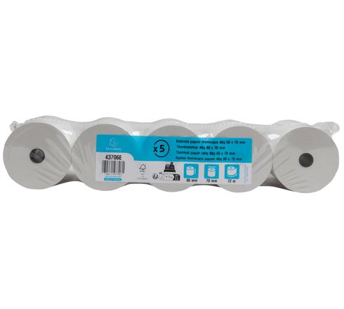 Bobine pour tickets de caisse 80x70mm - 72m - 1 pli thermique 48g/m2. - Blanc