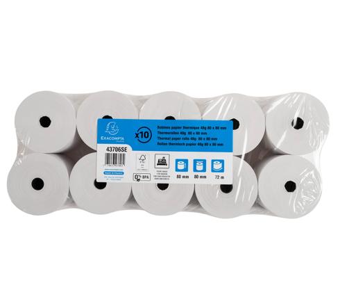 Bobine pour tickets de caisse 80x70mm - 72m - 1 pli thermique 48g/m2. - Blanc